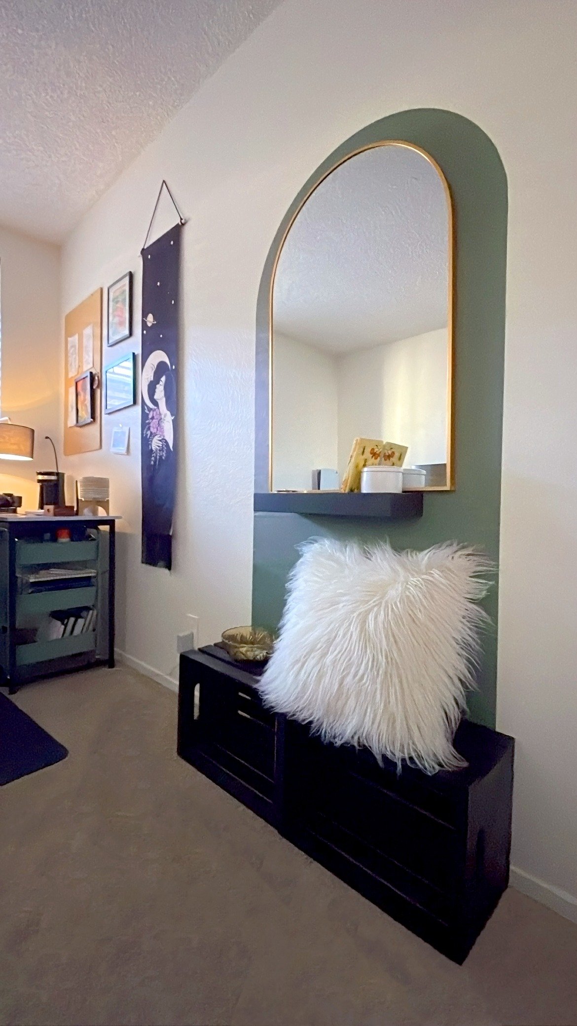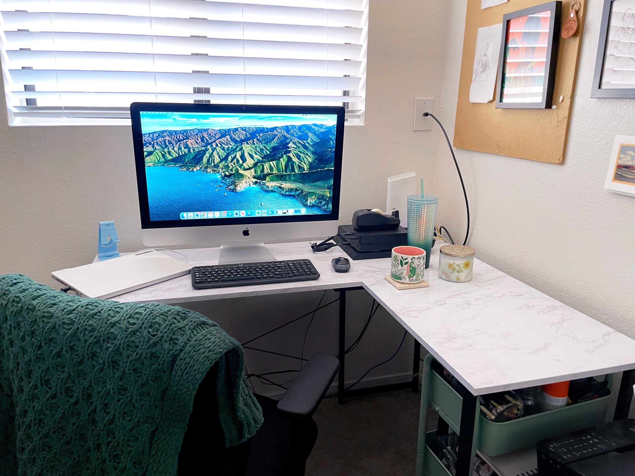 I can relate to the struggle of finding space in a small apartment. I used to work in the corner of a 700 sq ft apartment that I shared with my significant other and our cat. With little to no storage space and my love for art, finding a dedicated area to work was a challenge. My solution was a 2ft desk that was placed in the corner of our living room. While it was shared with my art supplies, it helped to know that when I, “went to work,” I had somewhere to go.