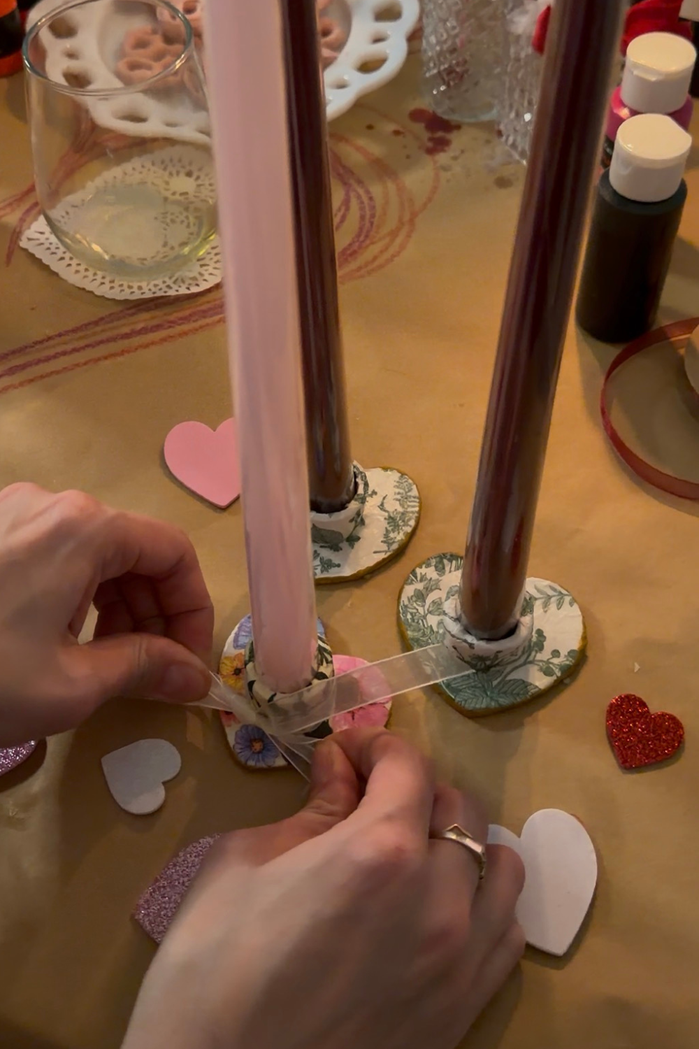 Each guest now has a handmade heart candle holder to take home.