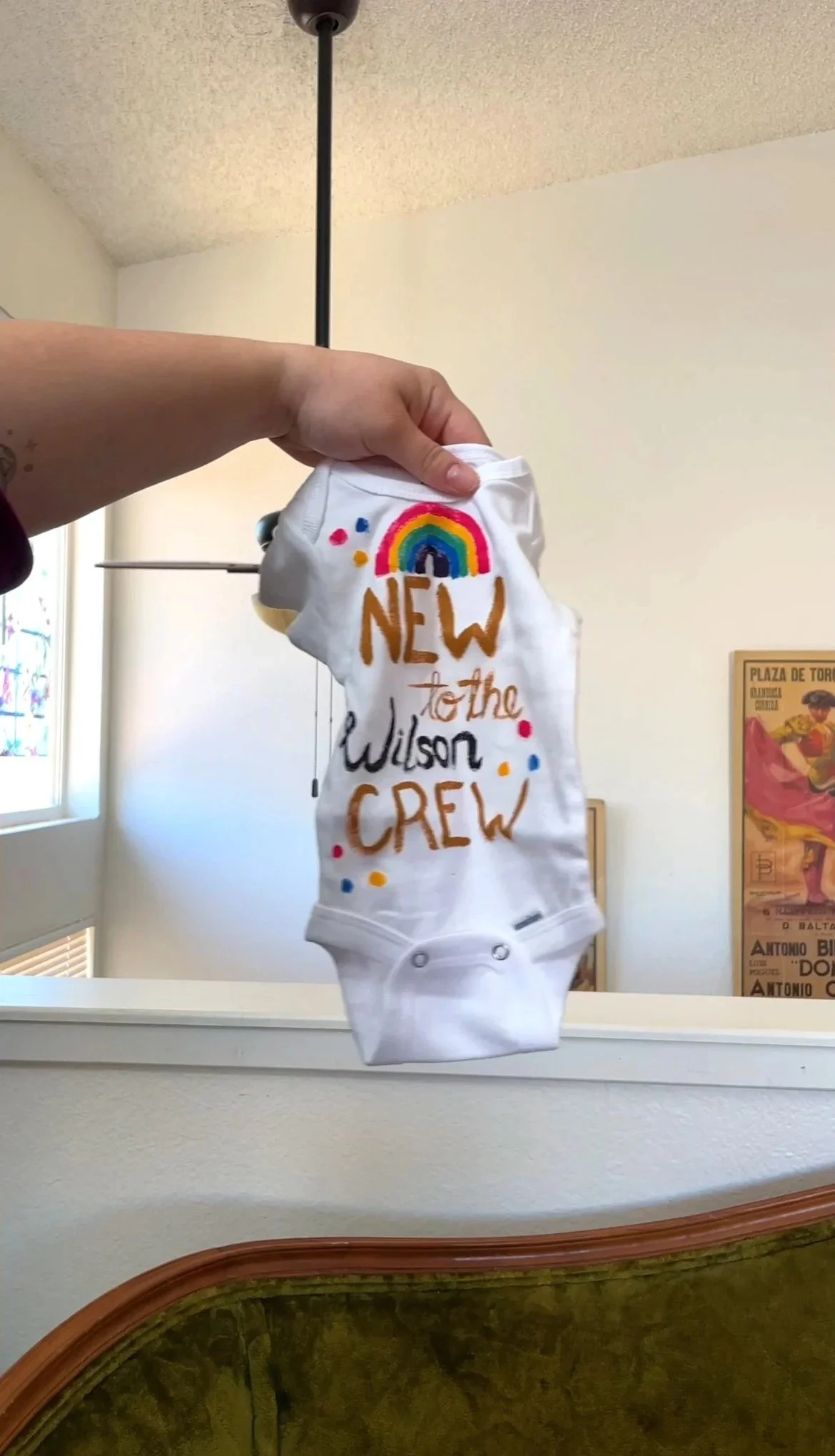The reveal was the trickiest part. After many discussions, my friend and I decided on painting baby onesies. A painting night was the perfect choice for us: we all love getting crafty. Plus, the supplies were pretty affordable!